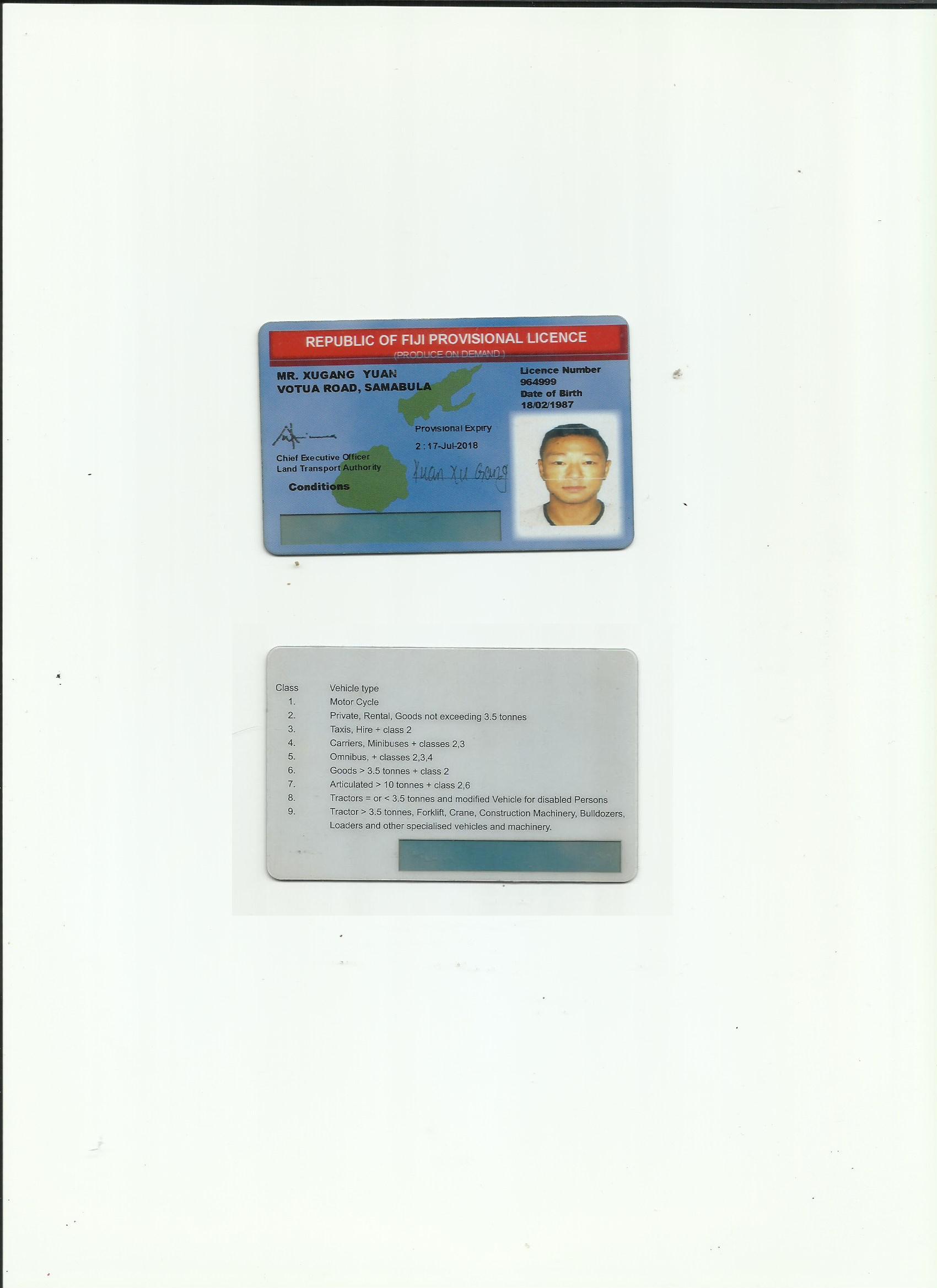 斐濟共和國駕照翻譯模版-咸陽有資質(zhì)翻譯公司-車管所認可翻譯機構(gòu)