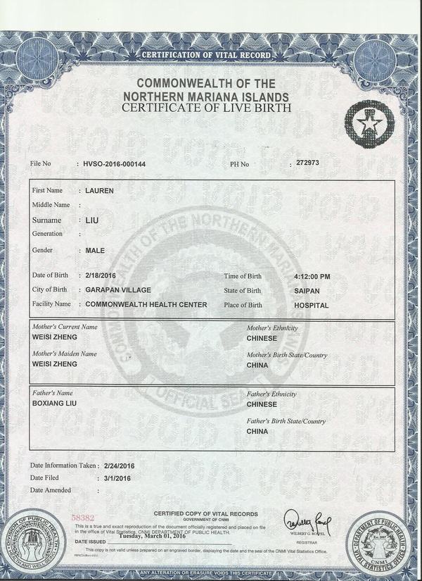 美國(guó)-北馬里亞納群島出生證明翻譯-咸陽(yáng)公證處認(rèn)可翻譯機(jī)構(gòu)